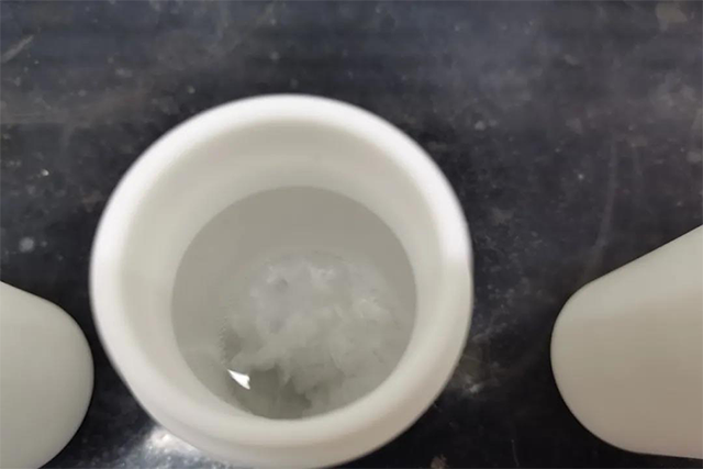 在恒溫220℃馬弗爐中消解1小時(shí);取出冷卻后擰開蓋子,在實(shí)驗(yàn)電熱板中蒸至近干,約2mL,用5mL硝酸和少量水分清洗消解罐,出現(xiàn)白色結(jié)晶物,再加入5mL硝酸于220℃電熱板消解15min,蒸至體積小于20mL;